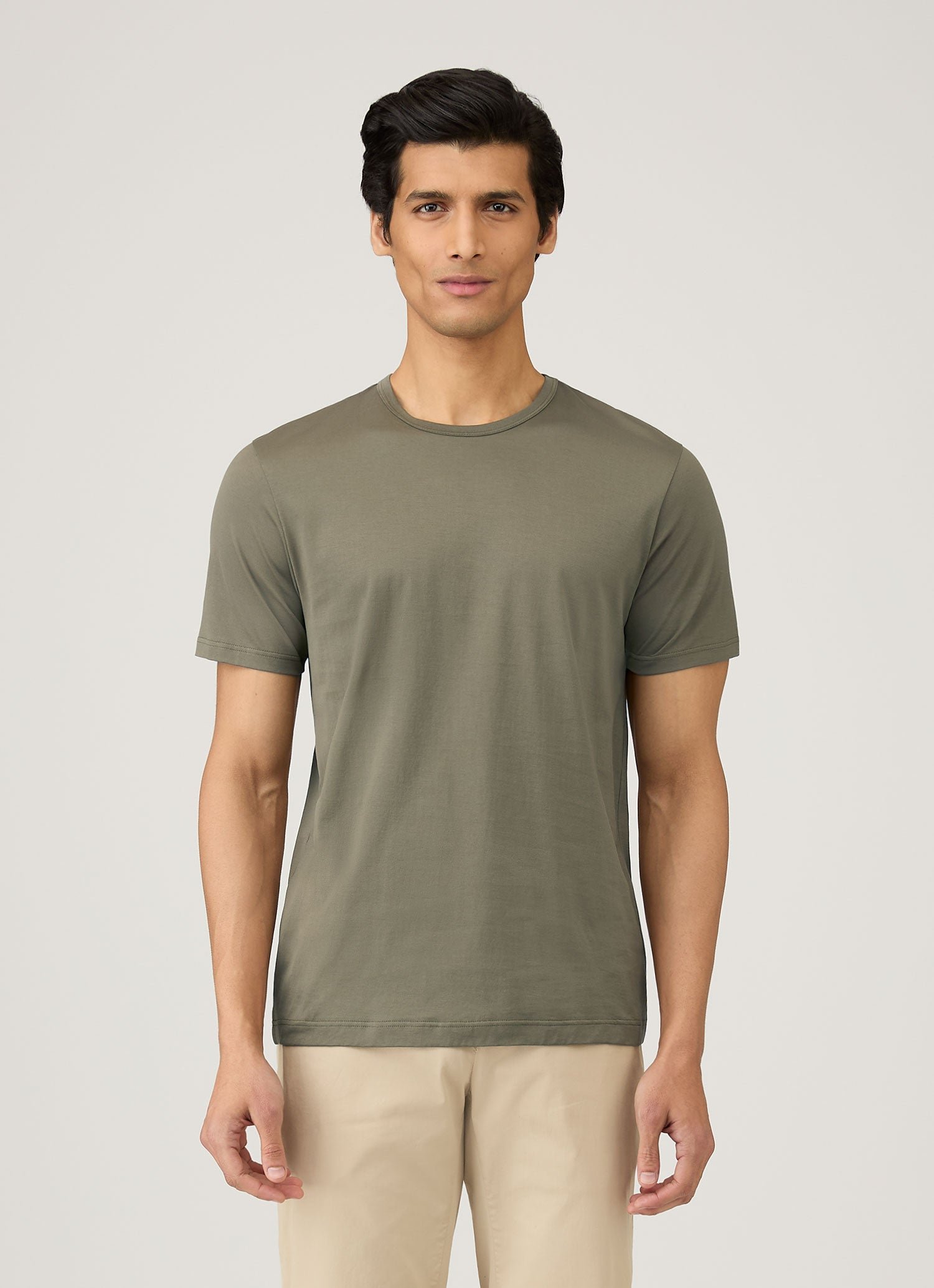 サンスペル独自の開発によるこの生地は、薄手ながら耐久性が高く、ガス焼きによって綿糸の不純物や毛羽を取り除くことでなめらかで非常にソフトな肌触りを実現しています。着心地の良いクラシックなフィット感で、ワードローブに欠かせない定番アイテムです。私たちは、これが「完璧なTシャツ」であると信じています。